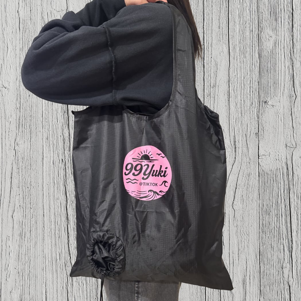 ブラックには、可愛らしい「99 Yuki」のロゴがあしらわれています。お友達とのお揃いコーディネートや、ギフトにもピッタリです。お買い物の際には、このエコバッグを持って、環境に優しい選択をしましょう!